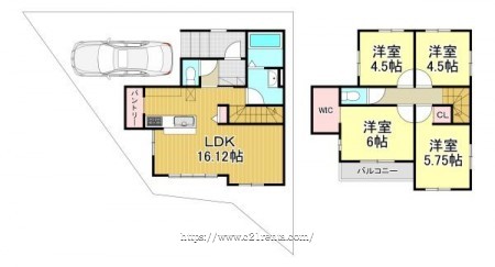 階数 区分 広さ 1F LDK 16.1帖 2F 洋 6.0帖 2F 洋 5.8帖 2F 洋 4.5帖 2F 洋 4.5帖 - 駐車場