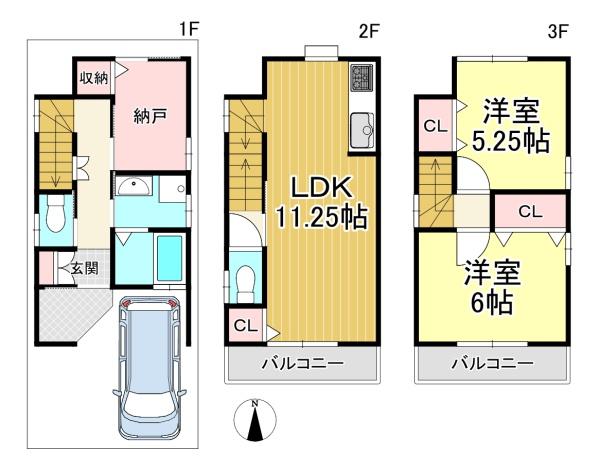 階数 区分 広さ 2F LDK 11.3帖 3F 洋 6.0帖 3F 洋 5.3帖 - 駐車場