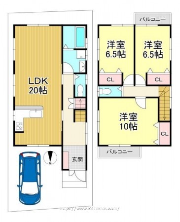 階数 区分 広さ 1F LDK 20.0帖 2F 洋 10.0帖 2F 洋 6.5帖 2F 洋 6.5帖 - 駐車場