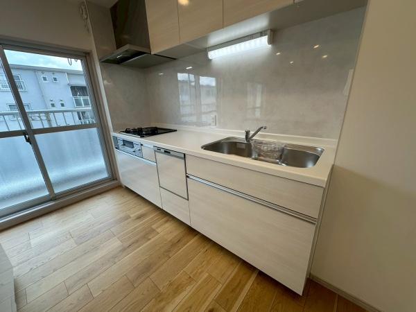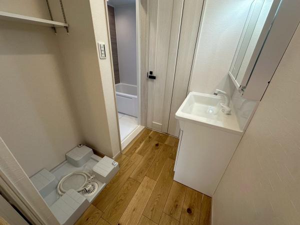 システムキッチン、カップボード、ガスコンロ、ユニットバス、洗面化粧台、洗濯パン、全建具、下駄箱、給湯器、分電盤、配線、配管新調
