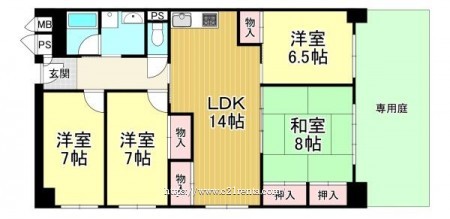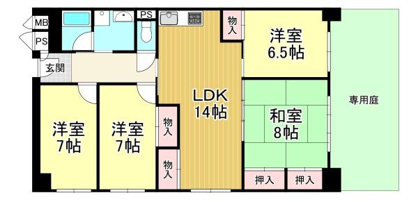令和6年11月リフォーム完了! 角住戸で広々専用庭あり!陽当り、通風良好です♪