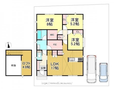 階数 区分 広さ 1F LDK 17.0帖 1F 洋 5.2帖 1F 洋 5.2帖 1F 洋 8.0帖 - 駐車場