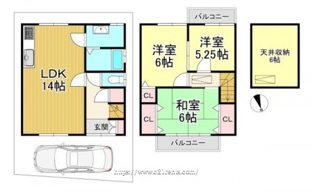 階数 区分 広さ 1F LDK 14.0帖 2F 洋 6.0帖 2F 洋 5.3帖 2F 和 6.0帖 - 駐車場