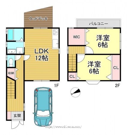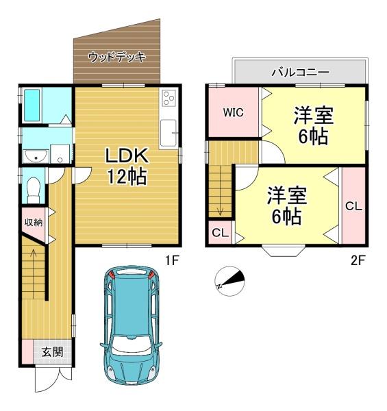 階数 区分 広さ 1F LDK 12.0帖 2F 洋 6.0帖 2F 洋 6.0帖 - 駐車場