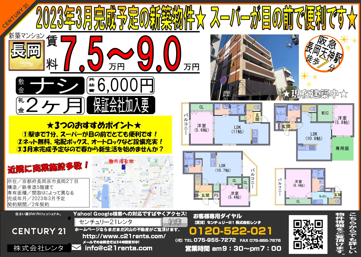 WEBチラシ詳細 2023年03月07日公開 2023年3月完成予定の新築物件★ スーパーが目の前で便利です★ Chez・nous・久遠 クリックすると、大きな画像でご覧いただけます。 このチラシの関連物件一覧