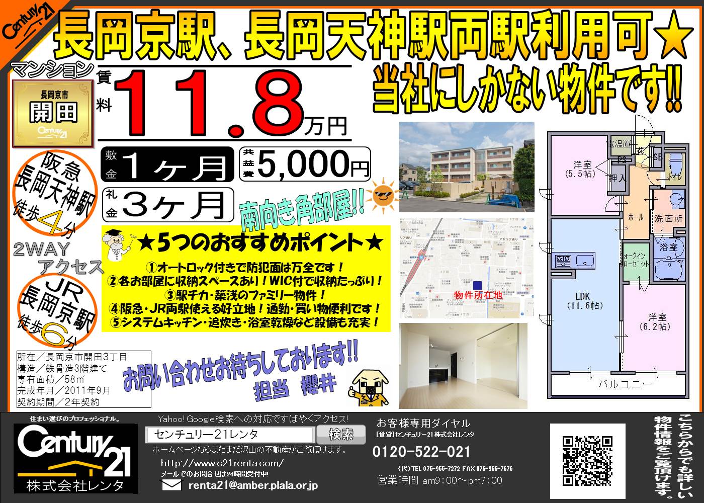 長岡京市のゴールデンゾーン!築5年の2LDKです★