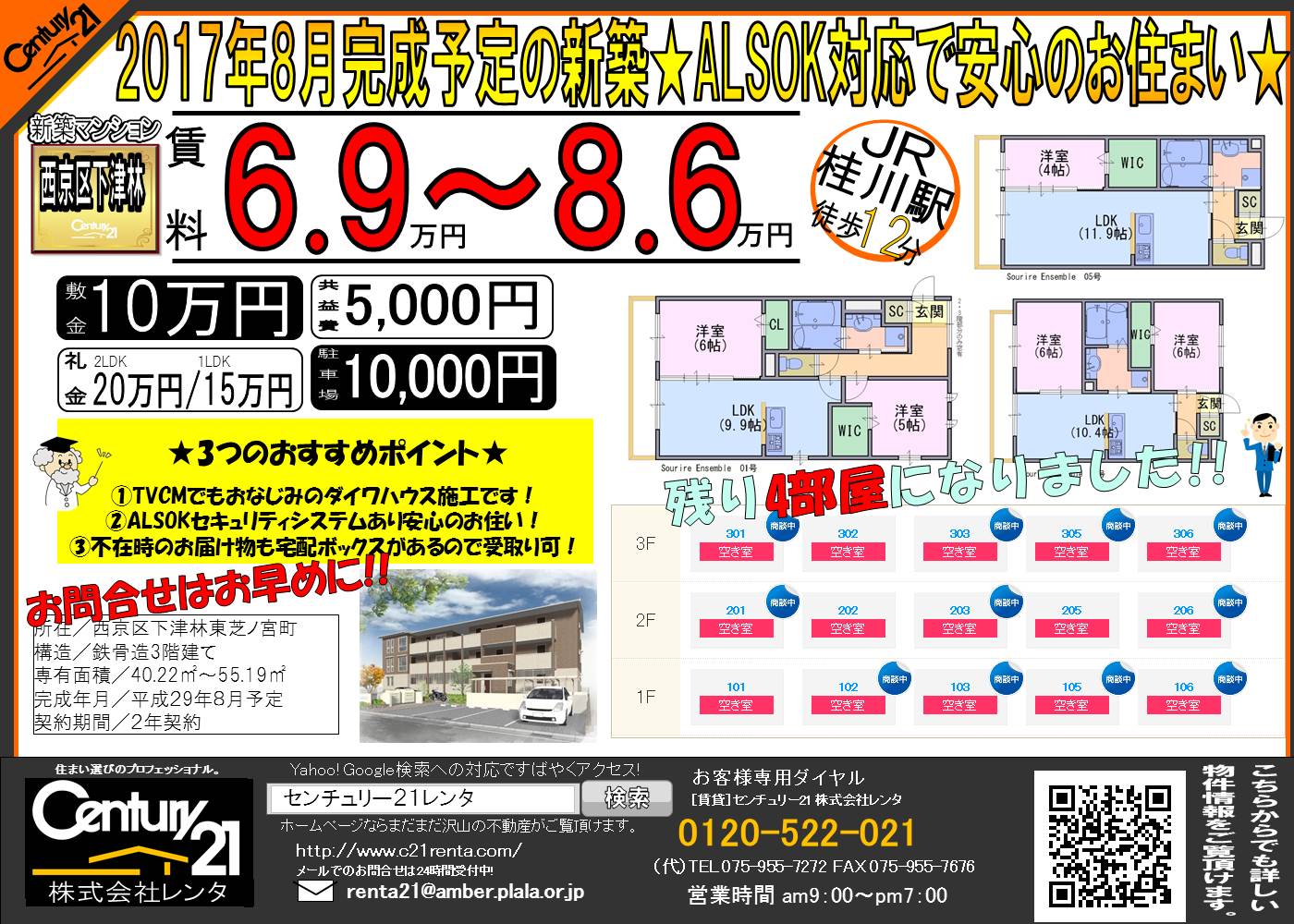 WEBチラシ詳細 2017年12月09日公開 新築マンション、Sourire Ensemble(スーリールアンサンブル)残り4部屋になりました★ クリックすると、大きな画像でご覧いただけます。 このチラシの関連物件一覧