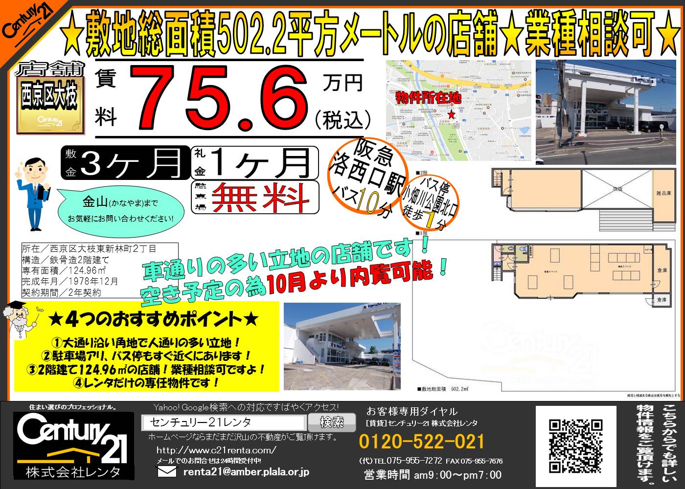 ★敷地総面積502.2平方メートルのテナントが空き予定出ました★