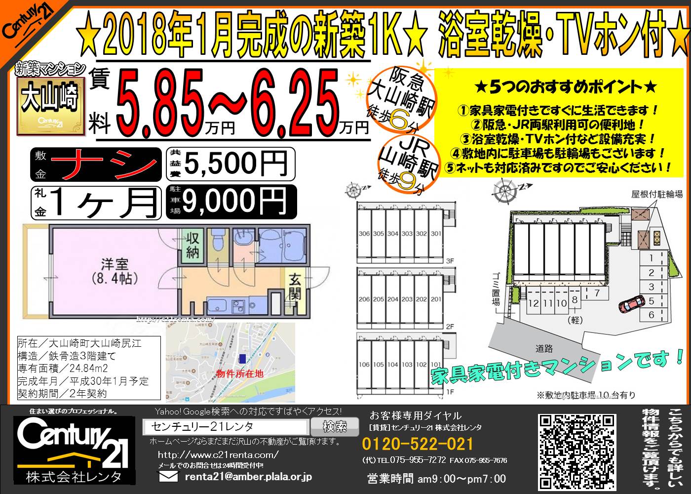 WEBチラシ詳細 2017年12月09日公開 ★大山崎尻江に新築1K建築中★ 2018年1月完成の新築1K★ 浴室乾燥・TVホン付★ クリックすると、大きな画像でご覧いただけます。 このチラシの関連物件一覧