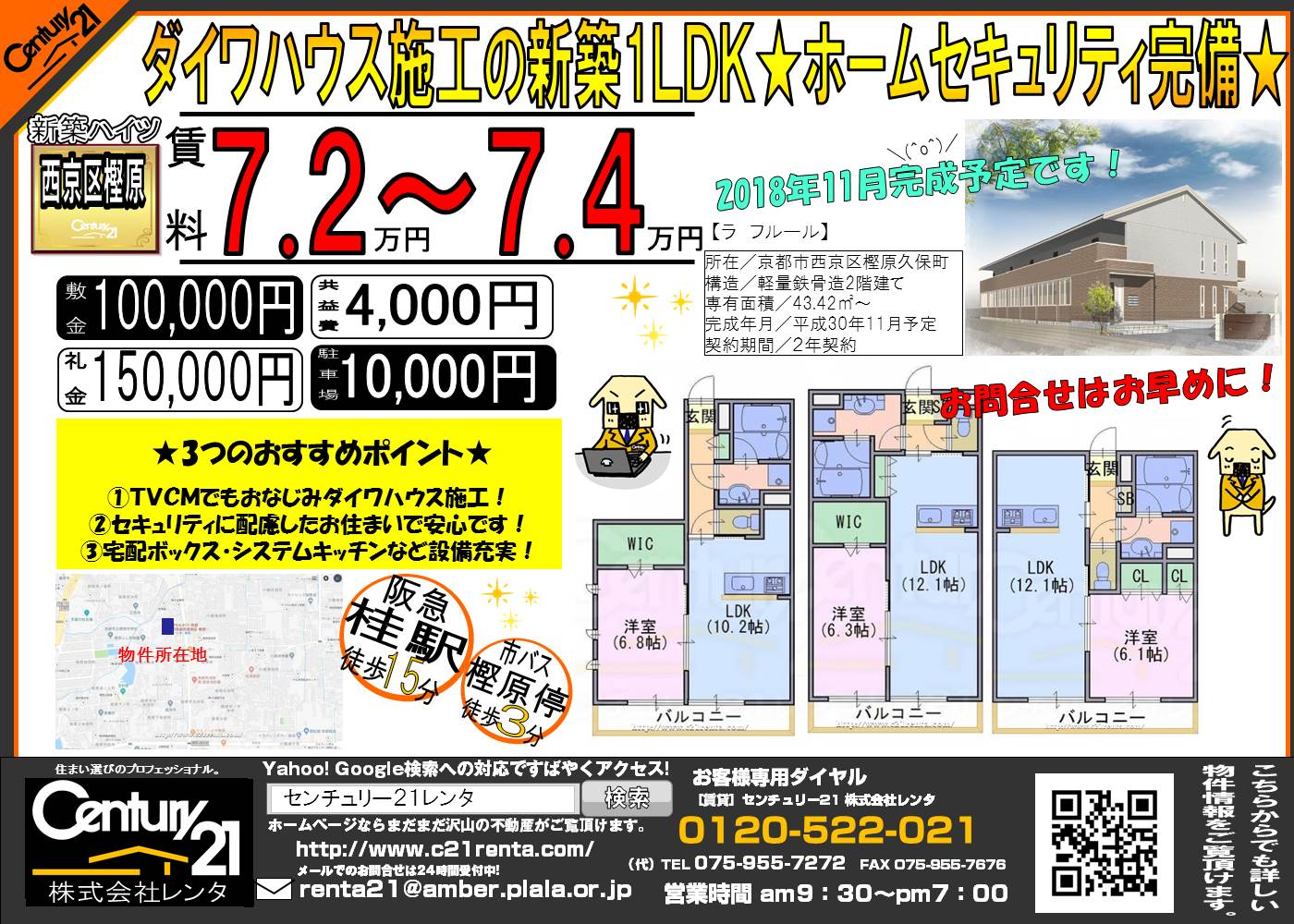 WEBチラシ詳細 2018年09月03日公開 ★西京区樫原久保町に新築1LDK建築中★ 京都府京都市西京区樫原久保町32 他 ラ フルール クリックすると、大きな画像でご覧いただけます。 このチラシの関連物件一覧