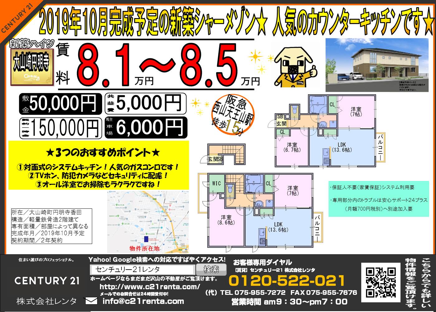 WEBチラシ詳細 2019年09月08日公開 2019年10月完成予定の新築シャーメゾン★ 角部屋★人気のカウンターキッチンです★ 乙訓郡大山崎町字円明寺小字香田 Grand Bel クリックすると、大きな画像でご覧いただけます。 このチラシの関連物件一覧
