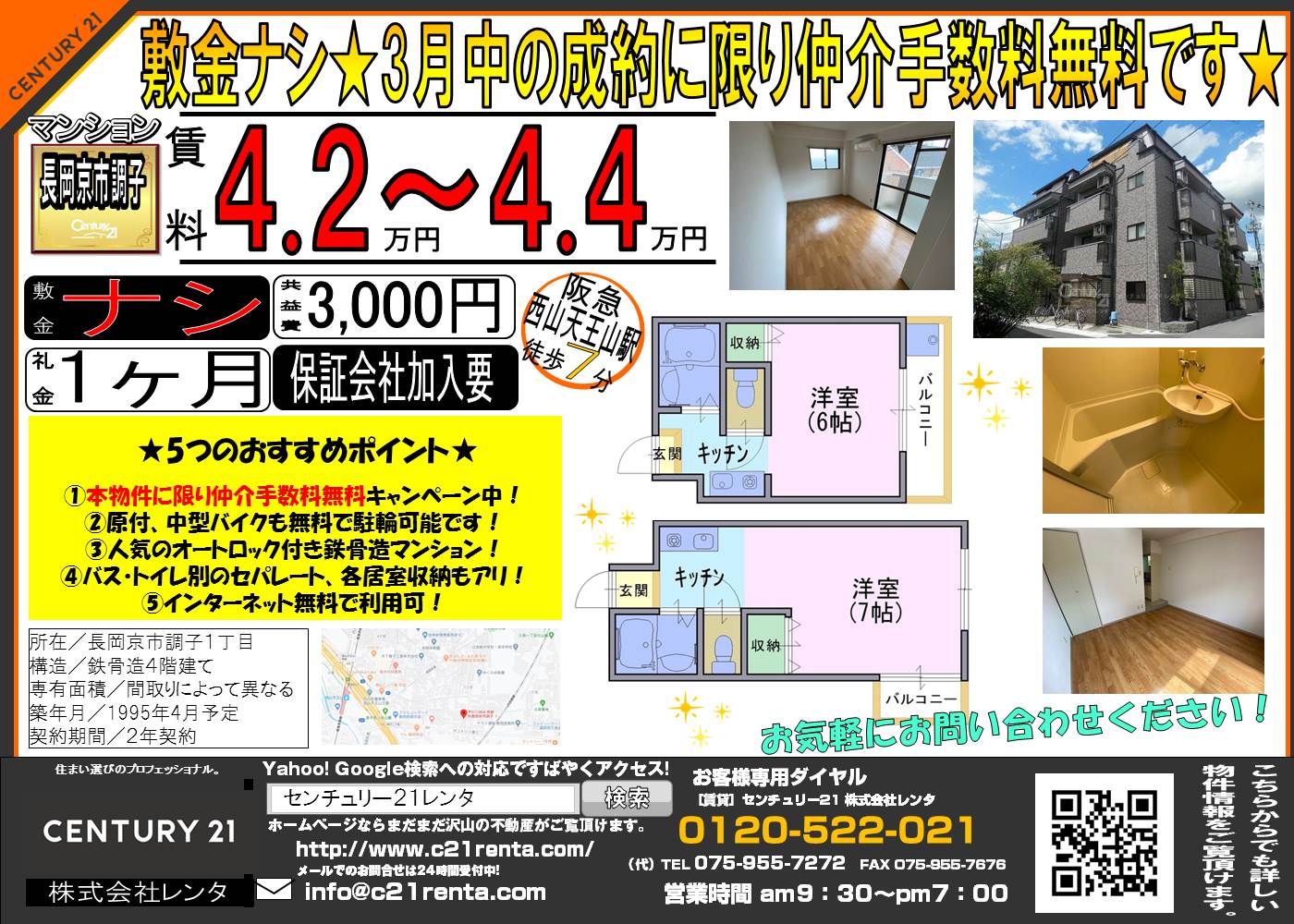 WEBチラシ詳細 2020年03月02日公開 3月限定、仲介手数料無料キャンペーン中です! 京都府長岡京市調子1丁目 サンプラザナカノ クリックすると、大きな画像でご覧いただけます。 このチラシの関連物件一覧