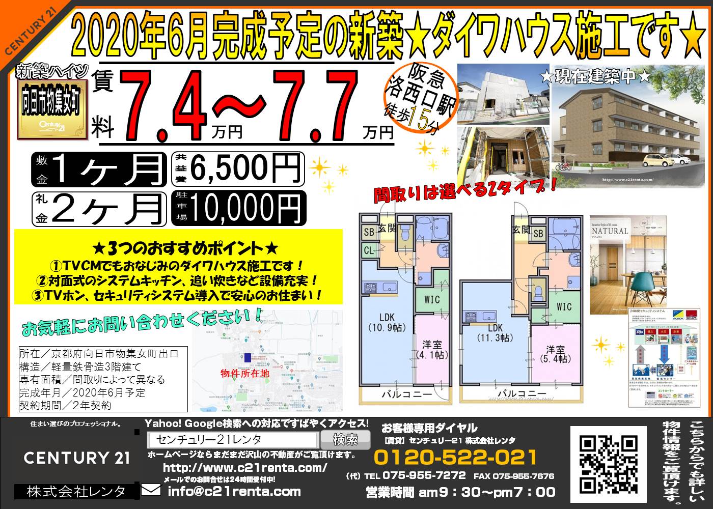 WEBチラシ詳細 2020年05月17日公開 2020年6月完成予定の新築★ ダイワハウス施工です★ 京都府向日市物集女町出口 仮称 清水様droom クリックすると、大きな画像でご覧いただけます。 このチラシの関連物件一覧